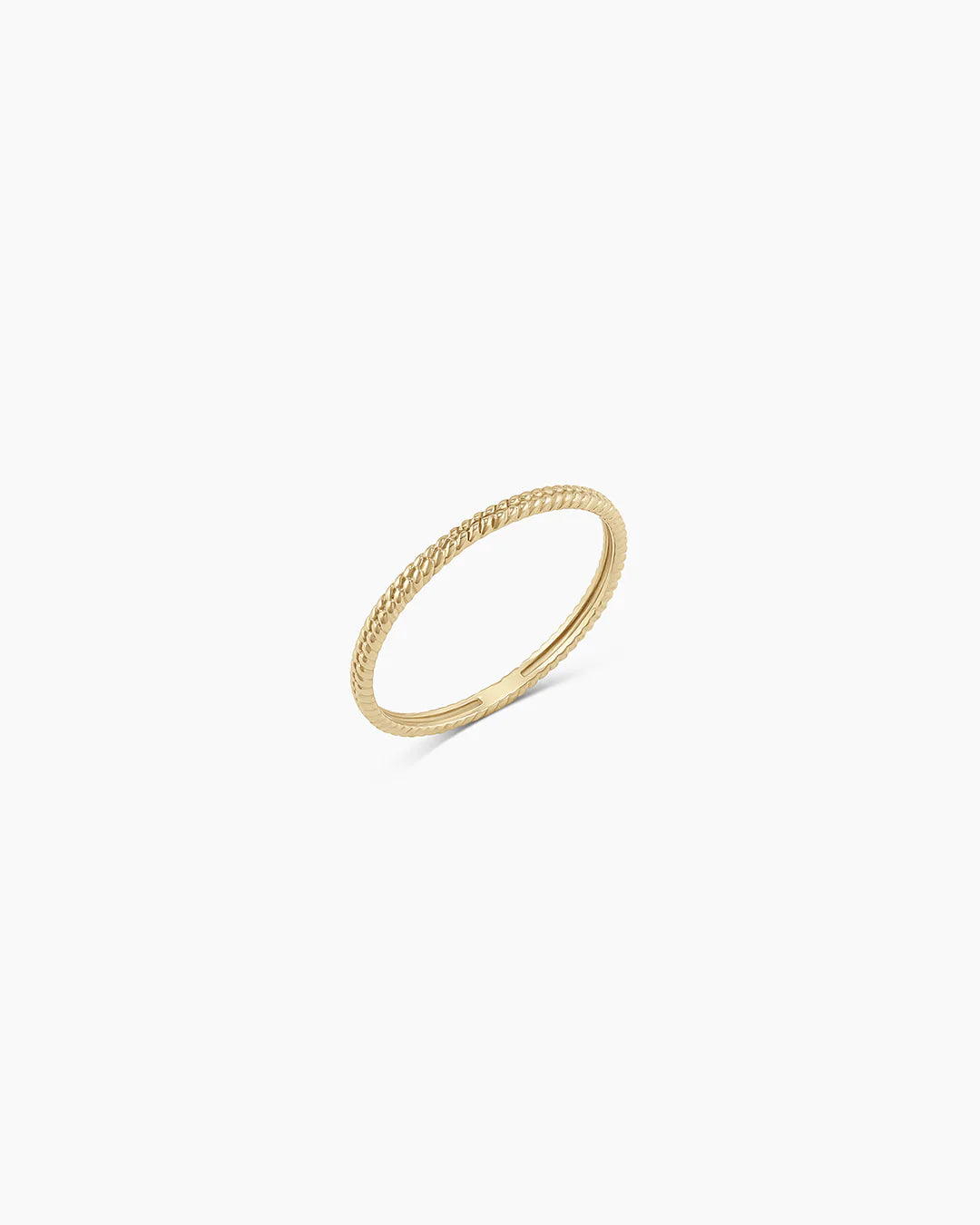 This stunning 14k solid gold ring features beautiful texture that is perfect for stacking with diamond bands or other solid gold rings.