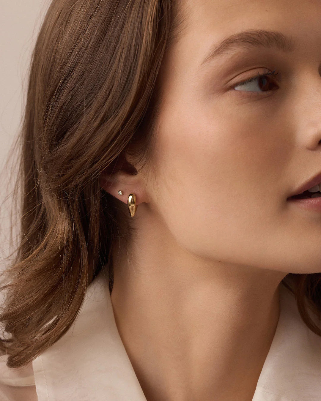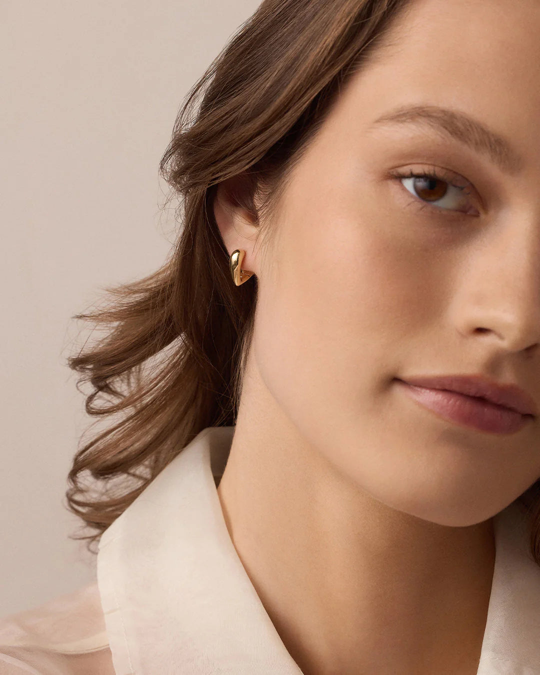 The perfect mix of edgy and sweet, these 18k gold plated huggie hoop earrings feature a heart design. Their size and fit makes them ideal for first or second piercings, letting you stack them effortlessly alongside other hoops and studs to create a look that’s uniquely yours.