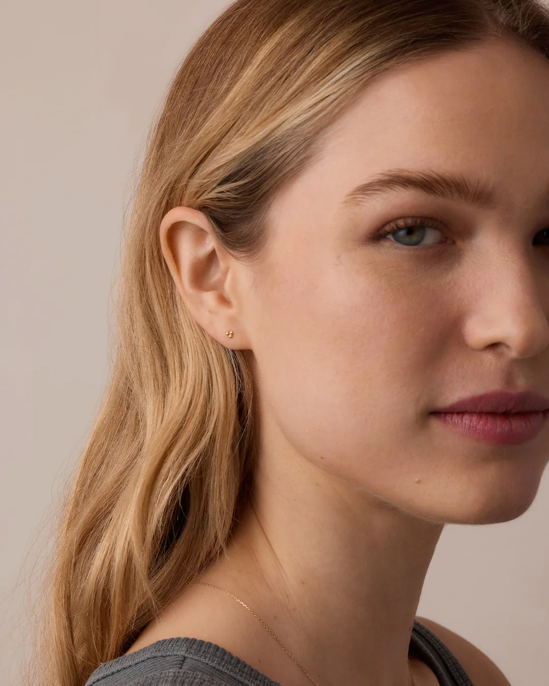 Add some fun to your everyday look by stacking single stud earrings in multiple piercings.