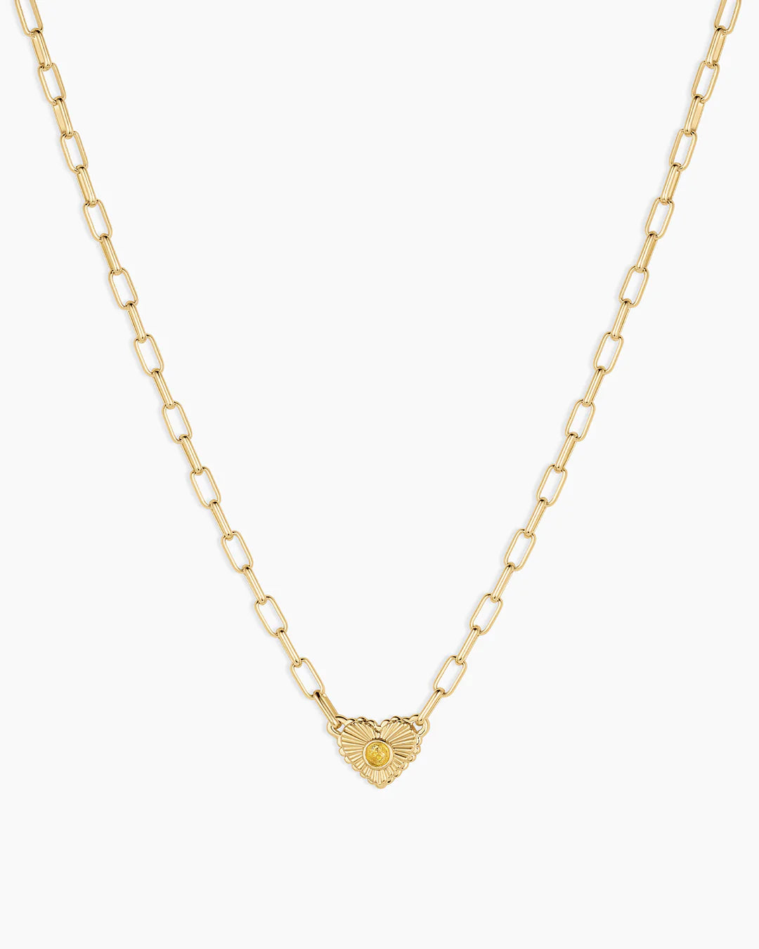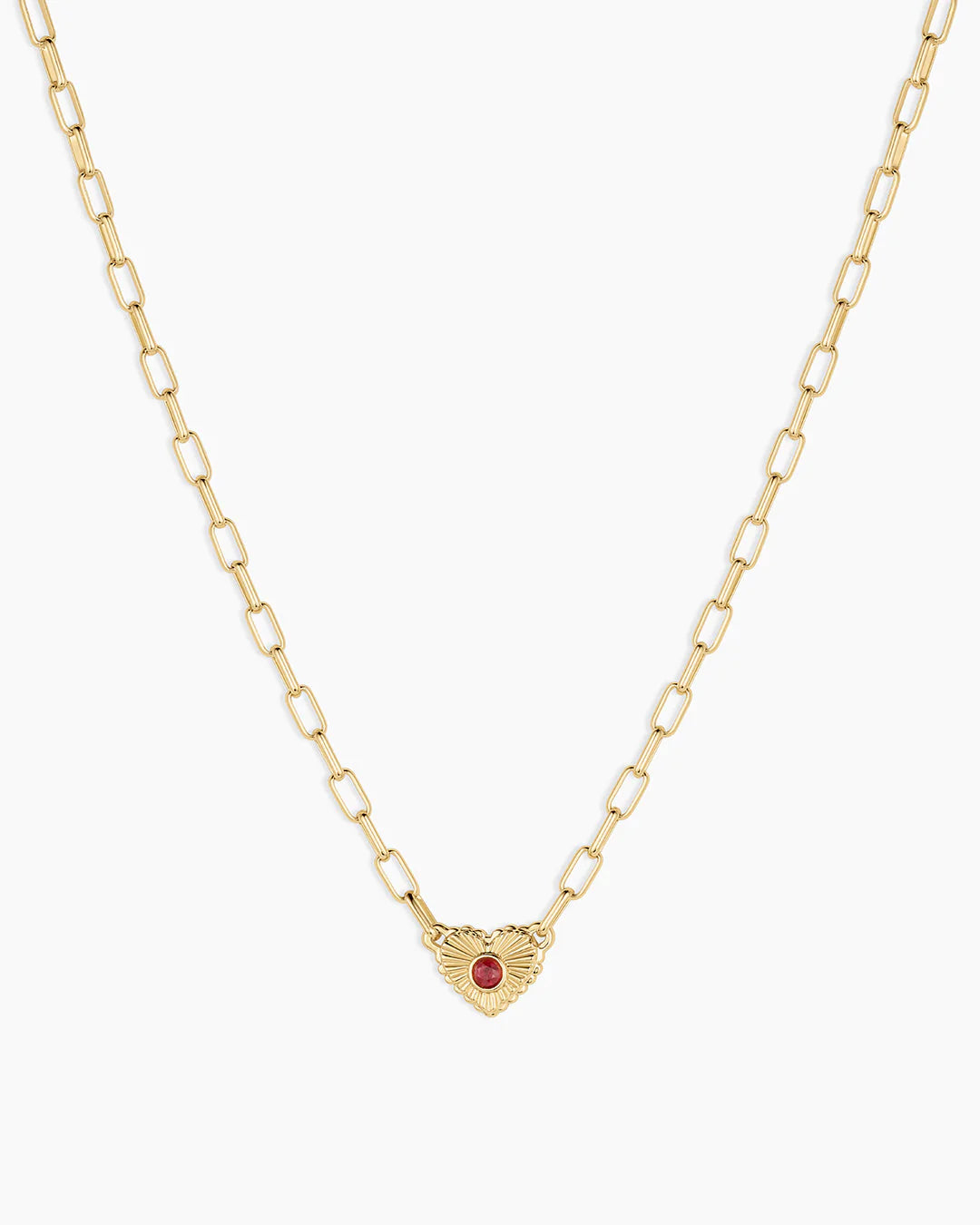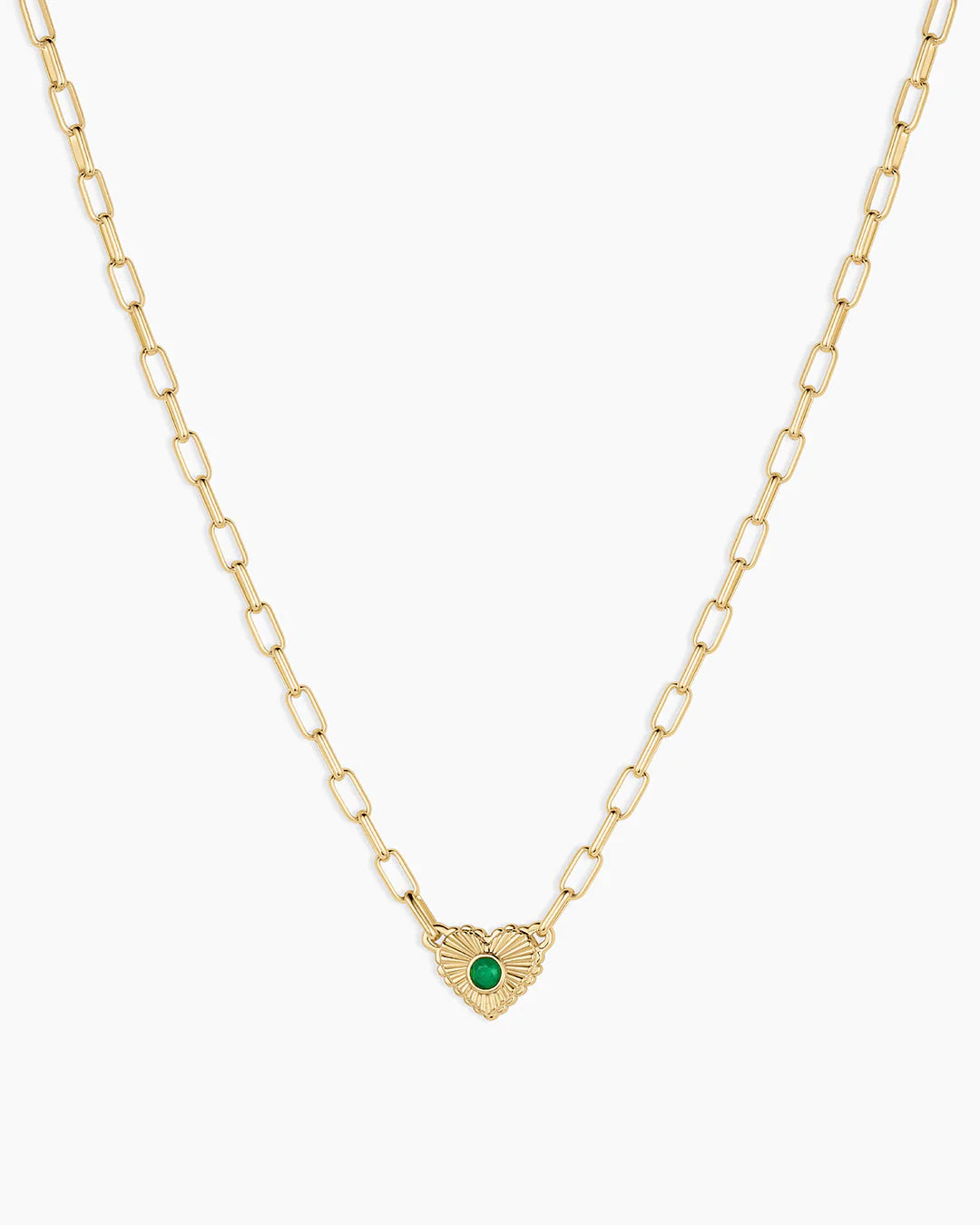 The Birthstone Heart Necklace is proof that a little personalization goes a long way. With a gold plated heart pendant and a sparkling birthstone at its center, this necklace makes an effortlessly meaningful gift—whether you choose their stone, your stone, or simply the one for its color. Perfect for birthdays, anniversaries, or just because, this necklace layers beautifully with your everyday favorites and adds a personal touch to any look.