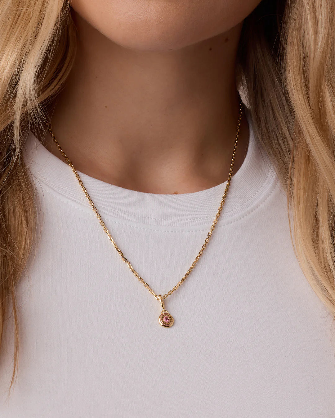 Personalize your favorite chain necklaces and bracelets with this dainty birthstone charm.