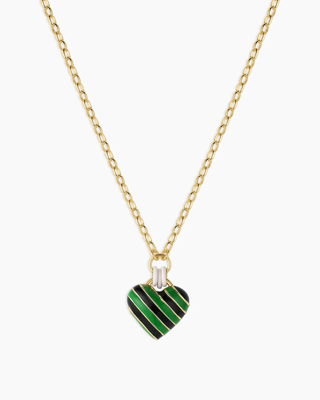 This bold striped heart pendant necklace is all about color, confidence, and not taking things too seriously. Featuring graphic stripes and vibrant hues, it brings a fresh, feel-good energy to your stack—this pendant necklace provides an instant mood-lift and a welcome break from solid metal styles. Designed to stand out without trying too hard, this piece is playful, expressive, and meant to be worn on repeat, whether you’re dressing up a simple look or leaning fully into the fun.