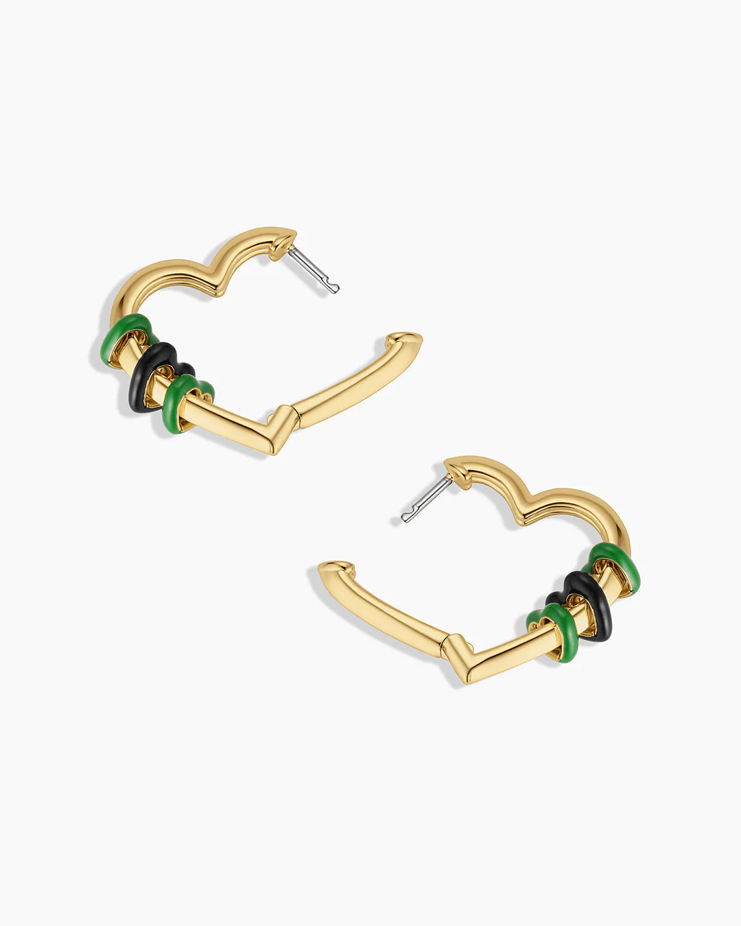 These bold hoops are all about color, confidence, and not taking things too seriously. Featuring graphic stripes and vibrant hues, these hoops bring a fresh, feel-good energy to your jewelry lineup—an instant mood-lift and a welcome break from everyday neutrals and solid metal designs. Designed to stand out without trying too hard, these hoop earrings are playful, expressive, and meant to be worn on repeat, because your jewelry should be fun.