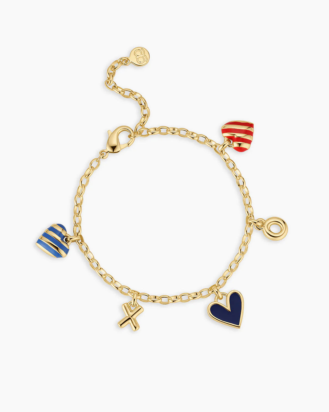 This bold striped heart charm bracelet is all about color, confidence, and not taking things too seriously. Featuring graphic stripes and vibrant hues, it brings a fresh, feel-good energy to your stack—this charm bracelet provides an instant mood-lift and a welcome break from everyday neutrals. Designed to stand out without trying too hard, this piece is playful, expressive, and meant to be worn on repeat, whether you’re dressing up a simple look or leaning fully into the fun.