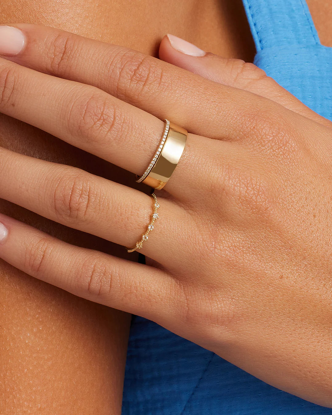 This solid gold and topaz ring is a perfect choice for every day wear. We like to wear ours stacked alongside other diamond and gold bands.