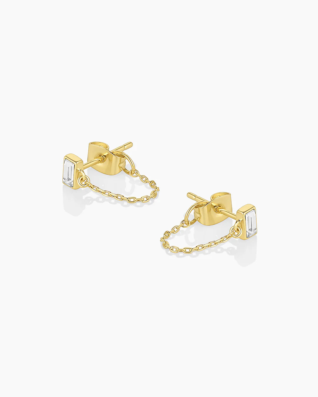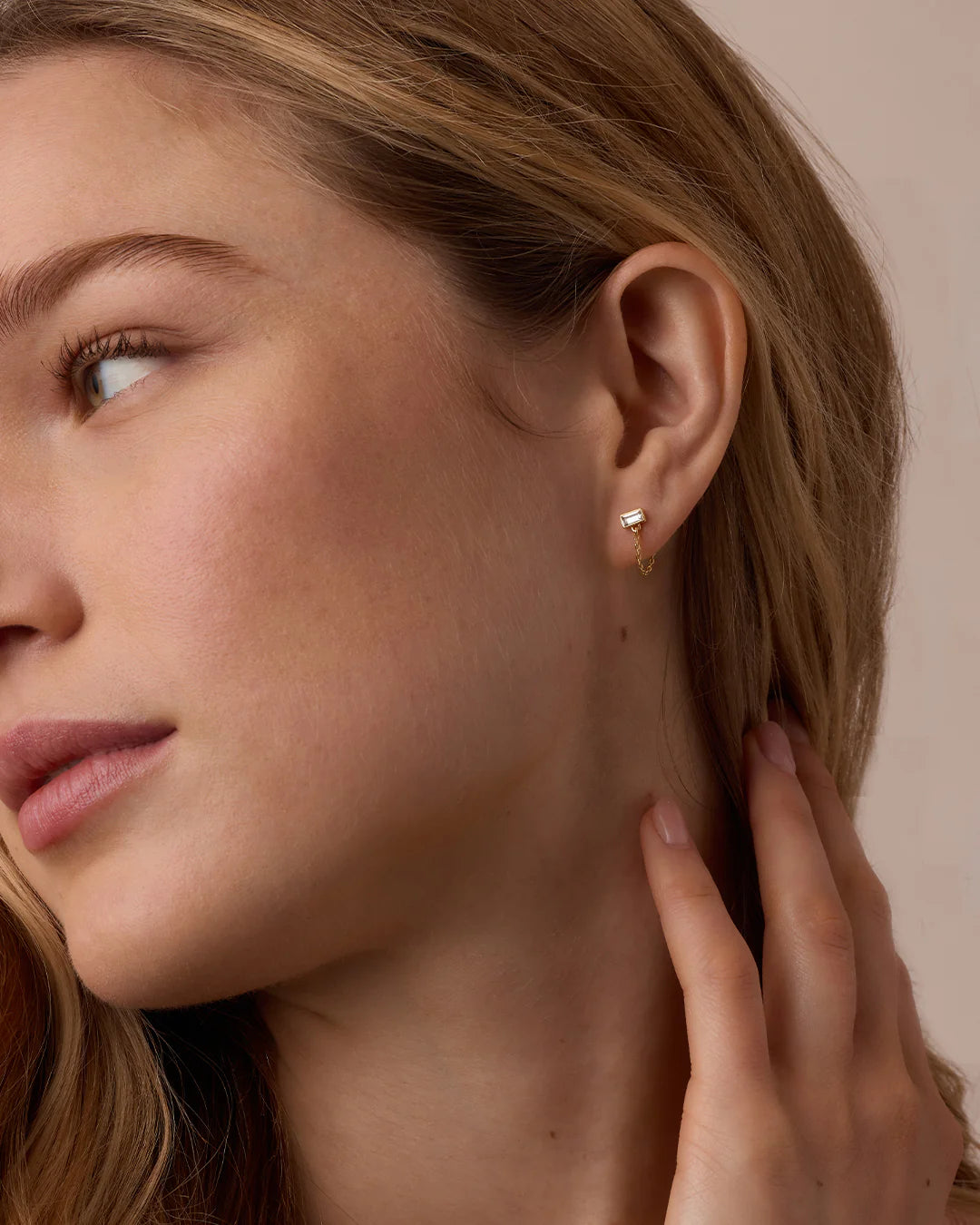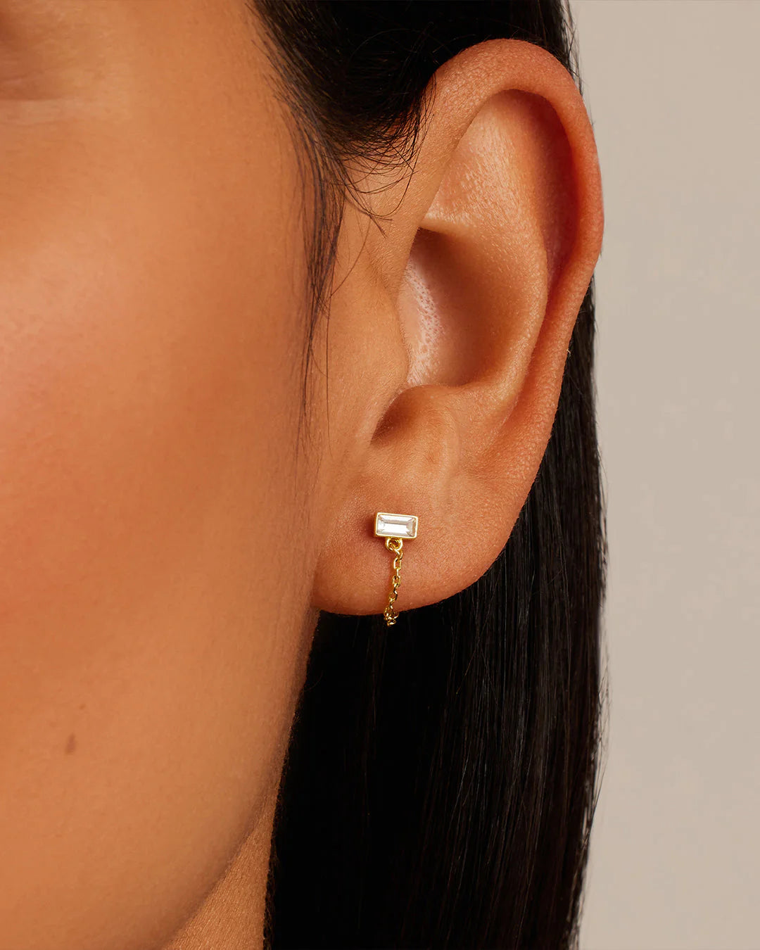 These huggie earrings are the perfect addition to any ear stack, with their shimmering chain design adding a fun, edgy touch to your look.