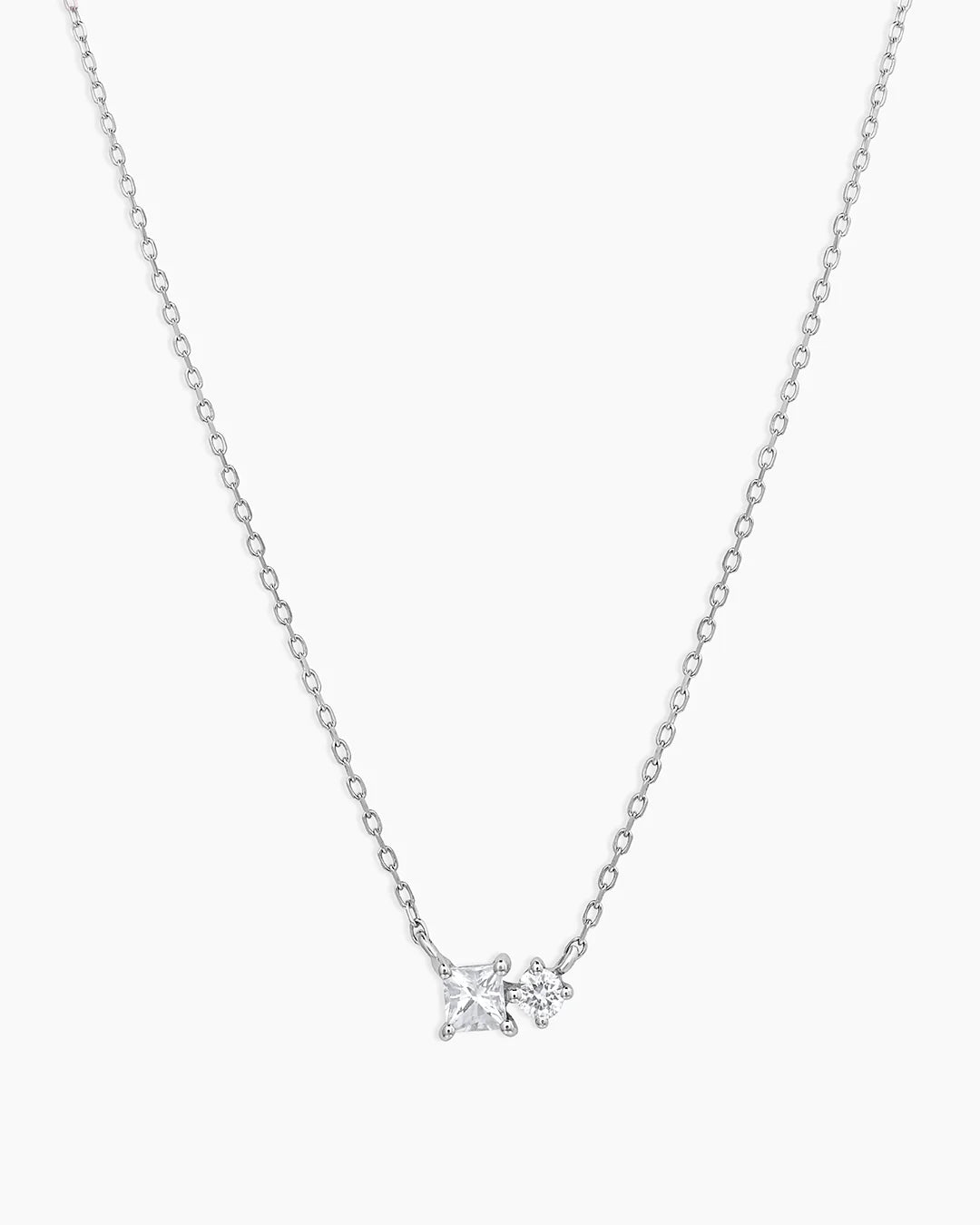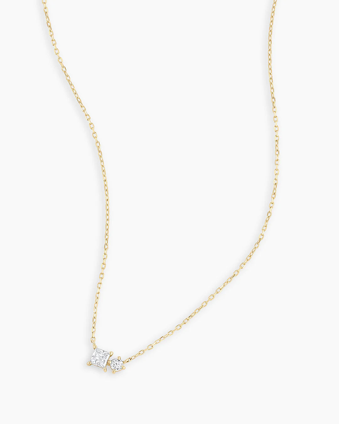 This beautiful 14k solid gold diamond and white sapphire necklace adds an eye-catching touch to any look. The unique design pairs perfectly with any outfit, making it the perfect necklace for special occasions or everyday wear.