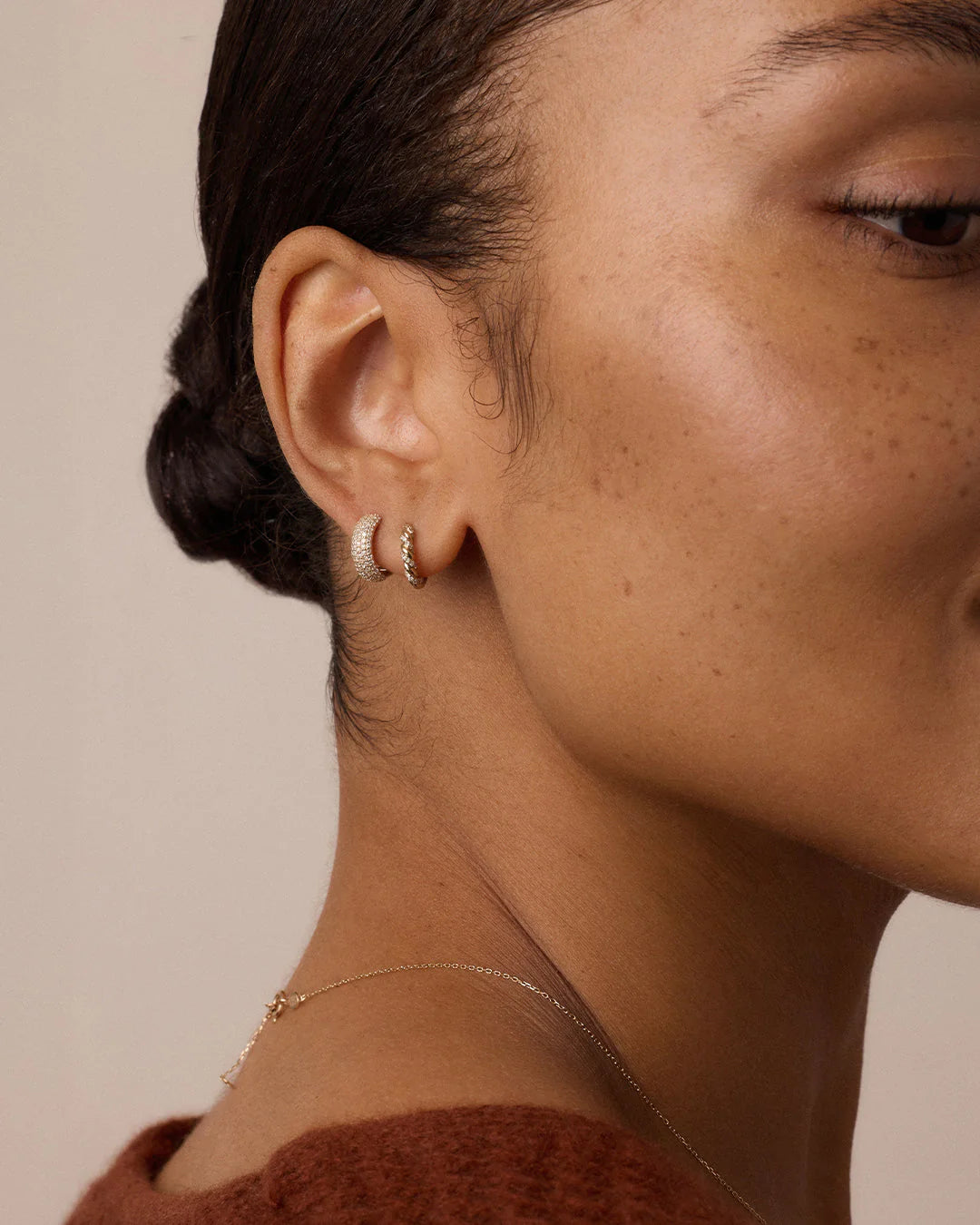 Set with even more brilliant diamonds, this single 14k solid gold diamond huggie earring brings insane shine to your everyday stack. Designed for stacking or styling alone, it’s a forever-worthy addition to your ear stack.