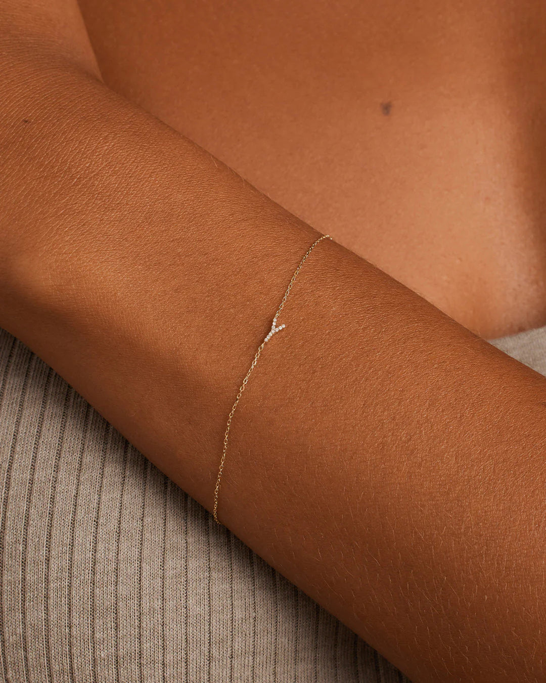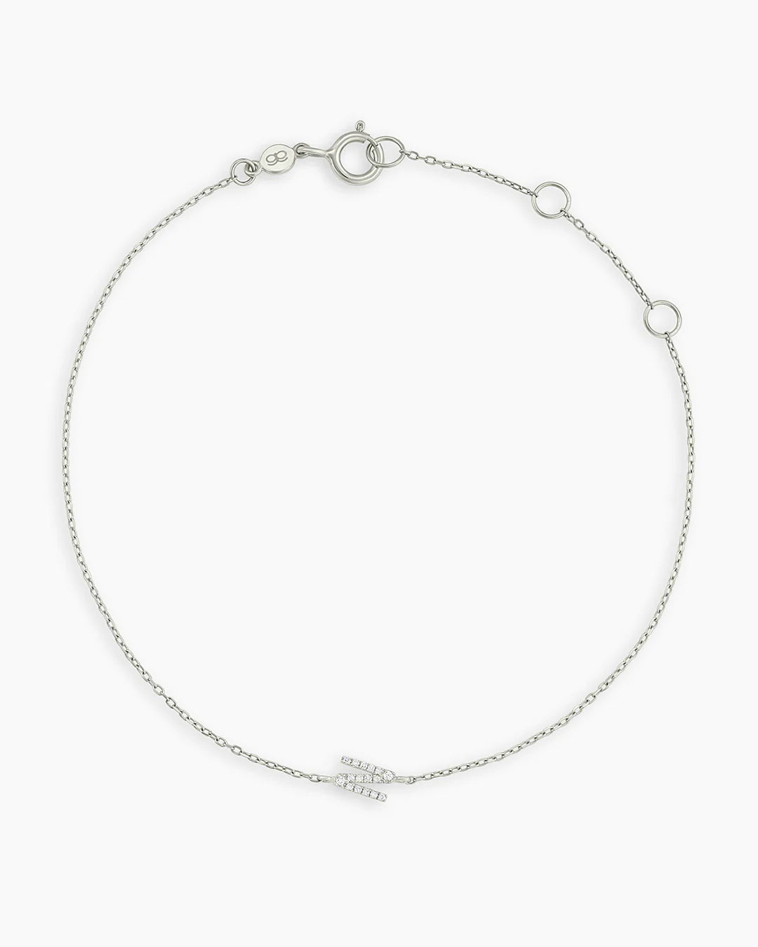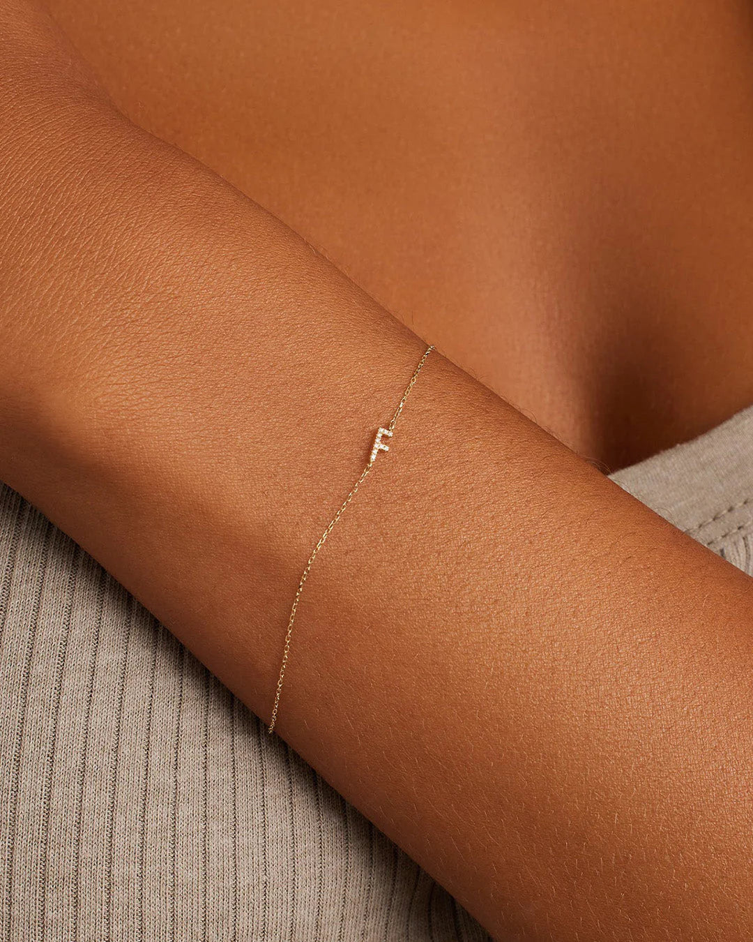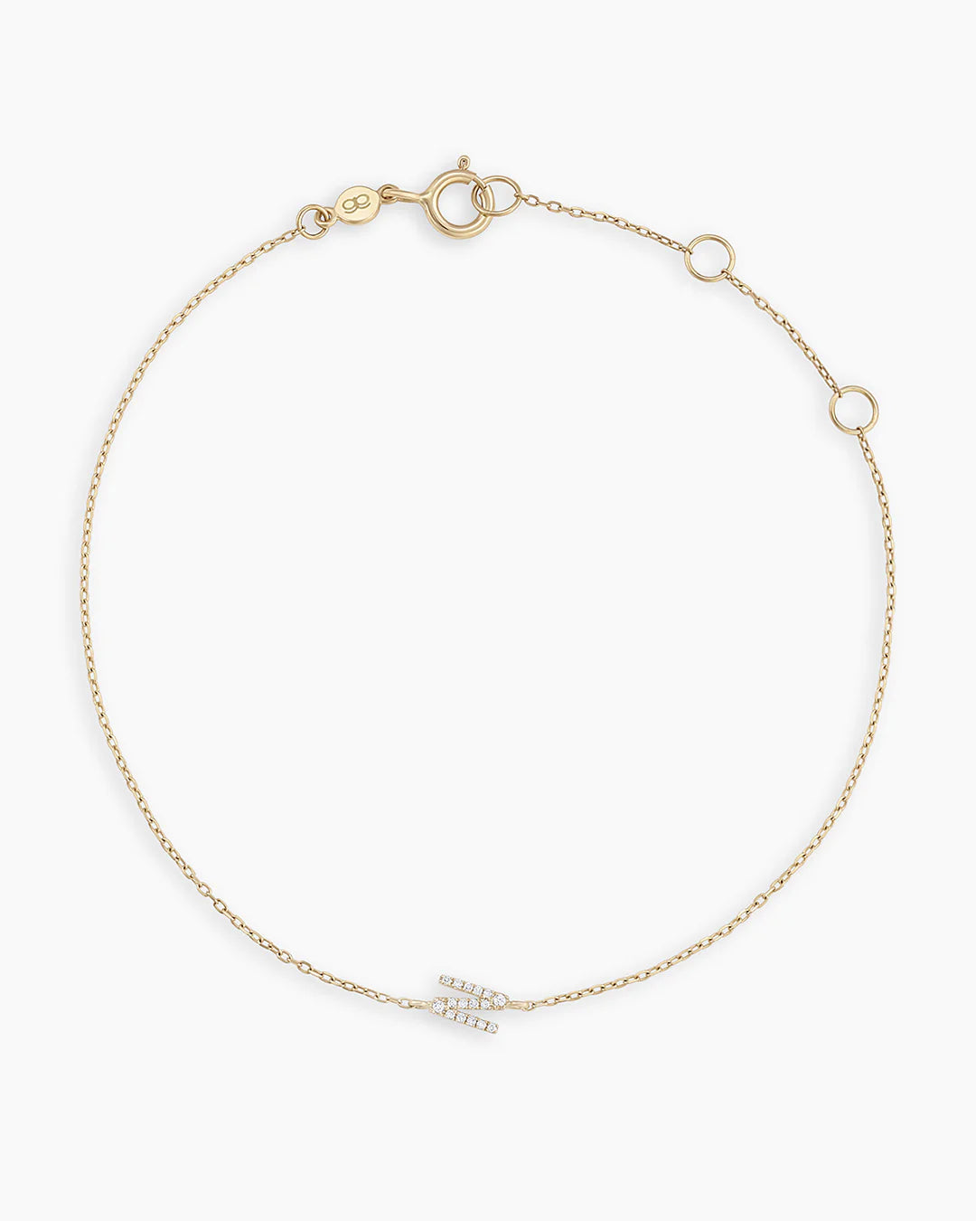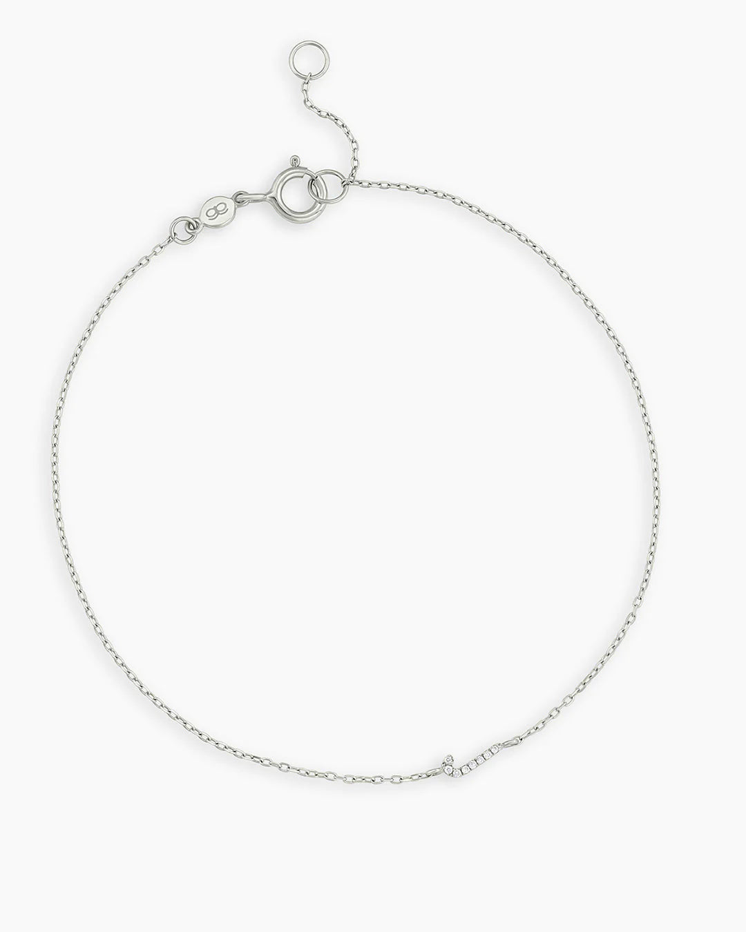 This classic diamond and solid gold initial bracelet features a personal initial design. This diamond initial bracelet is perfect for stacking with other gold bracelets, and its lightweight construction makes it comfortable to wear.