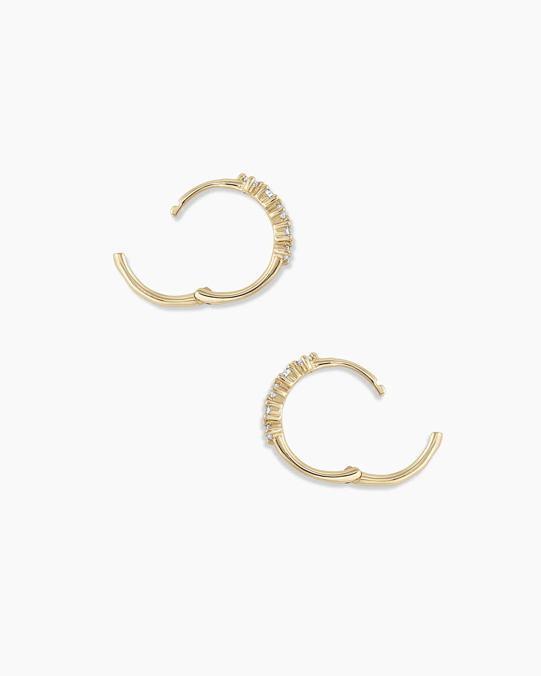 This pair of Diamond Row Huggies is sure to make a statement with its row of dazzling diamonds perfect for first, second, and third piercings. Its classic design will shine all day and night.