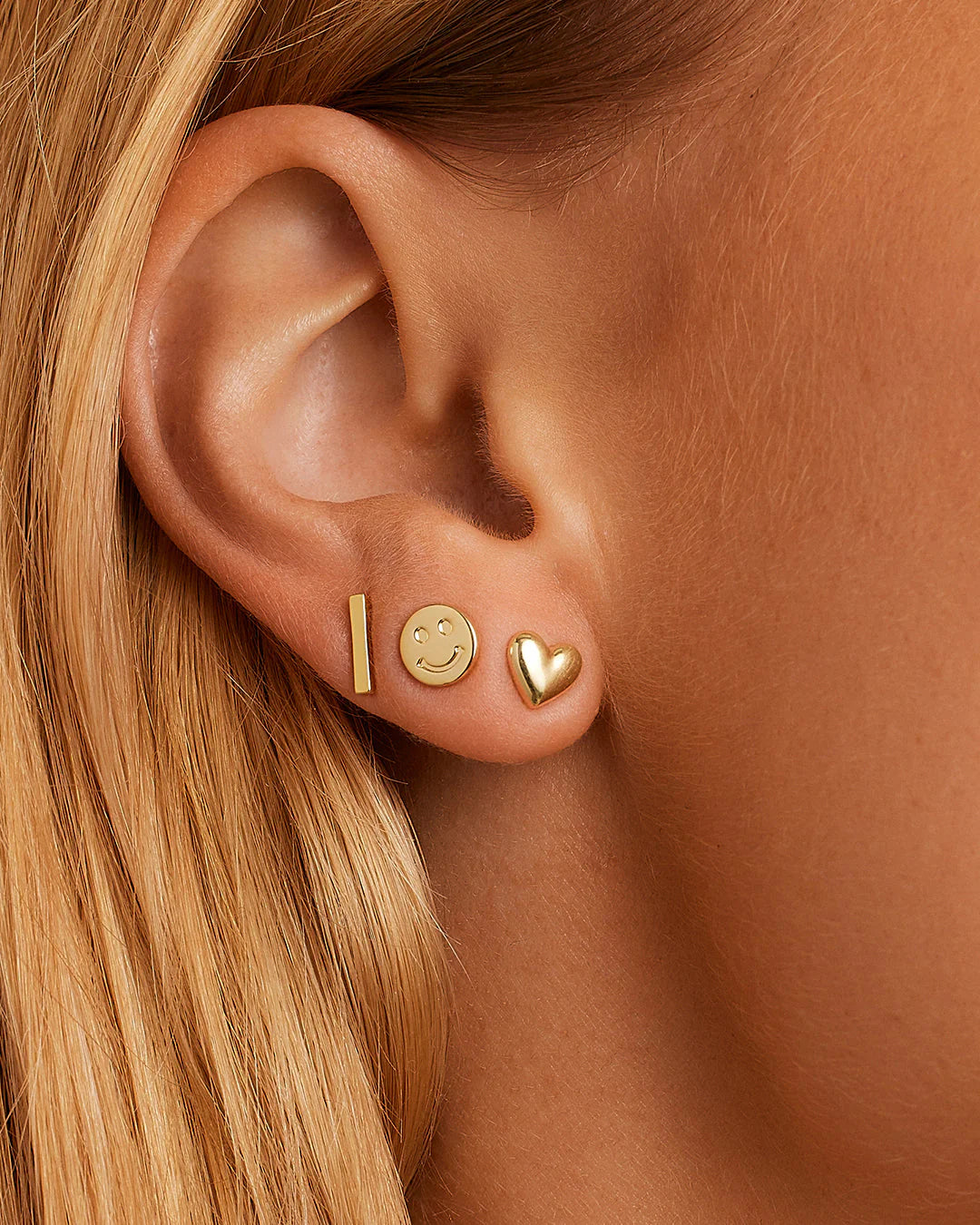 Add some fun to your everyday look by stacking single stud earrings in multiple piercings.