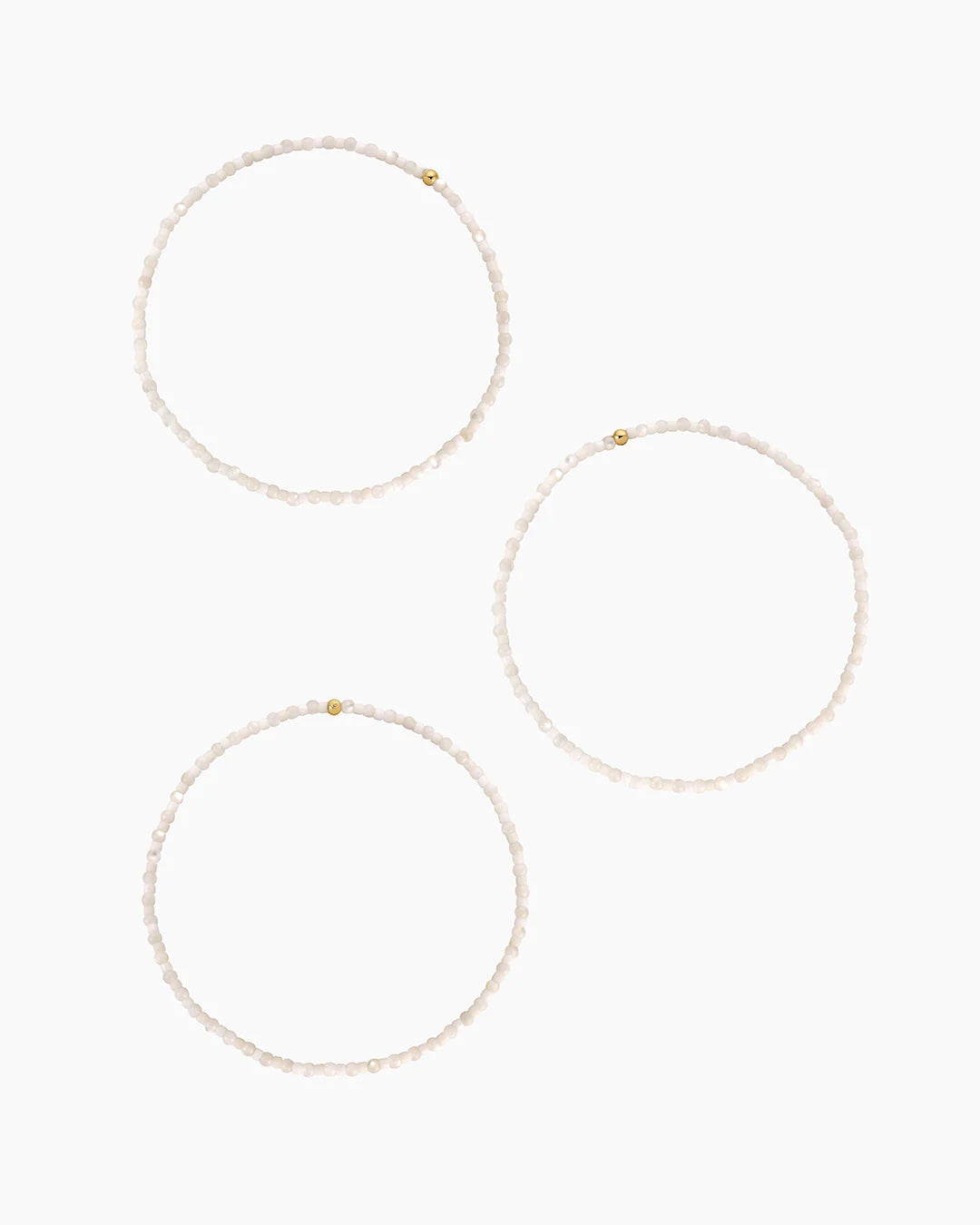 Summer is the season to experiment with fun, beaded bracelets in unexpected color combinations. This set of three bracelets looks beautiful stacked between your favorite gold and 18k gold plated bracelets.