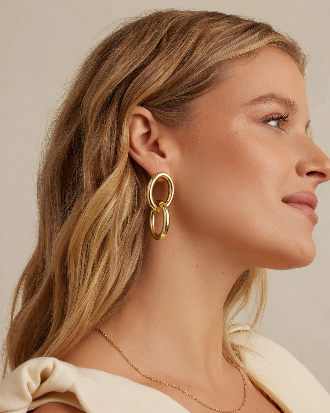 Elevate your ear stack with the Lou Drop Earrings. With a beautiful interlocking design, these hoops are sure to make a statement. Lightweight and versatile, they're perfect for day or night, adding a touch of shine to any outfit.