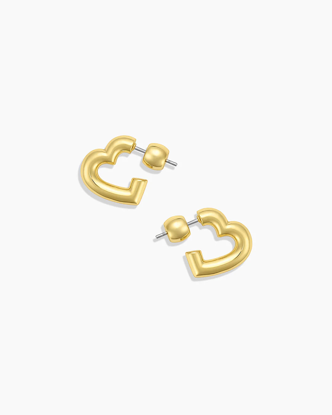 These lightweight, gold heart huggie earrings are both sweet and statement - wear them in your first piercing alongside your favorite huggies and studs.