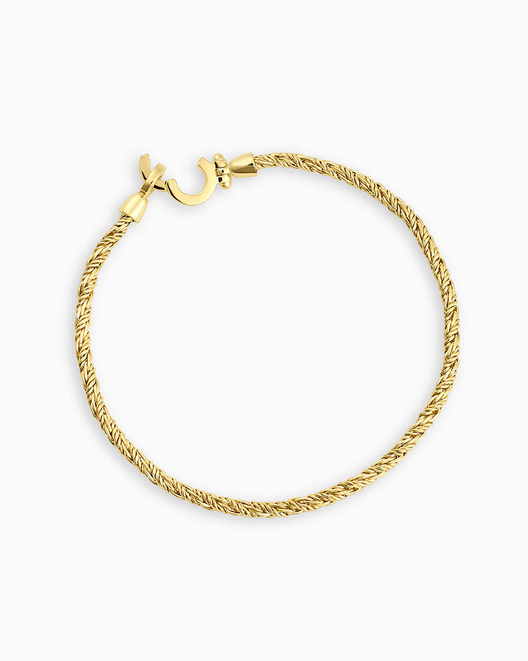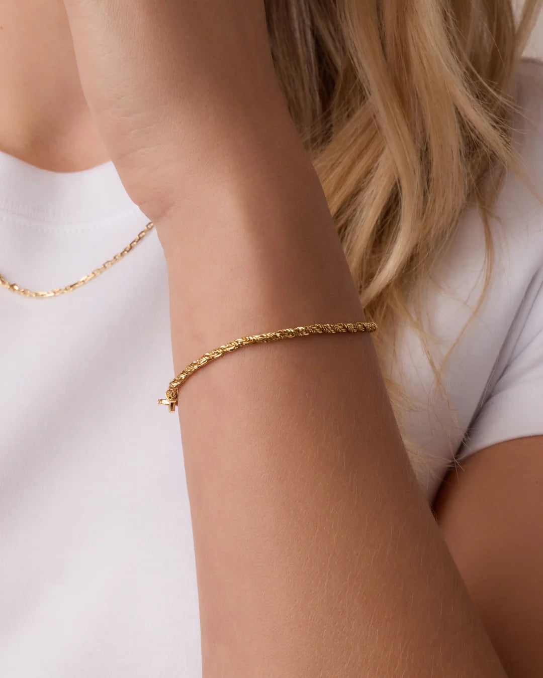 Make a statement with the beautiful Marin Bracelet. This bracelet features a unique rope detail that adds major shine to your stack. For a matching moment, pair with the Marin Necklace.