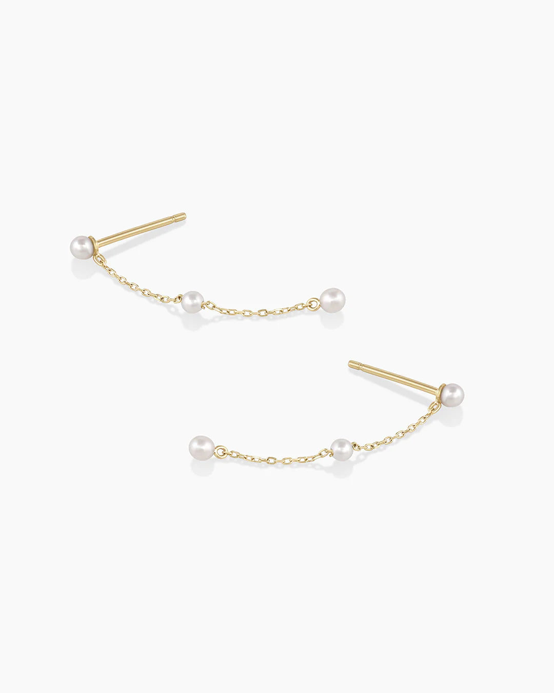 The Newport Pearl Earrings radiates timeless elegance and sophistication. Crafted with 14k solid gold and genuine white pearls, this beautiful drop earring is the perfect finishing touch for any occasion.