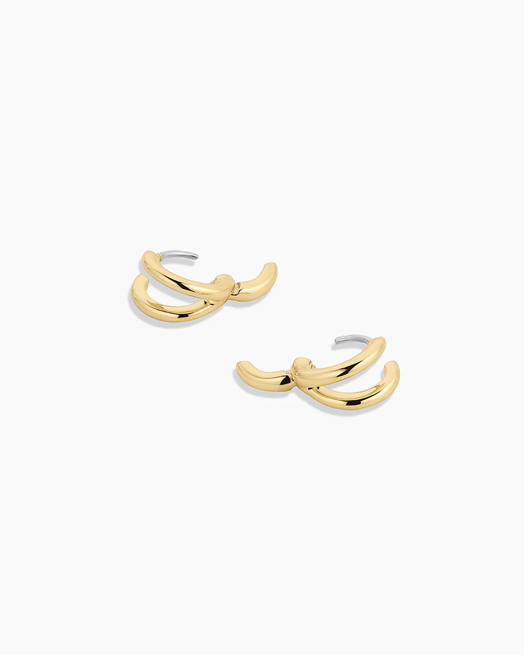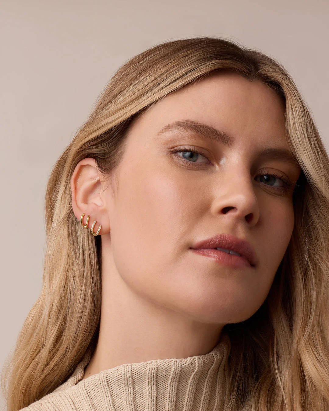 Fake a full stack with these 18k gold plated huggie hoop earrings - designed to make it look like you have multiple piercings, even if you only have one. Stack these alongside the Shimmer Double Huggies for a statement stack, or keep it simple and wear these on their own.