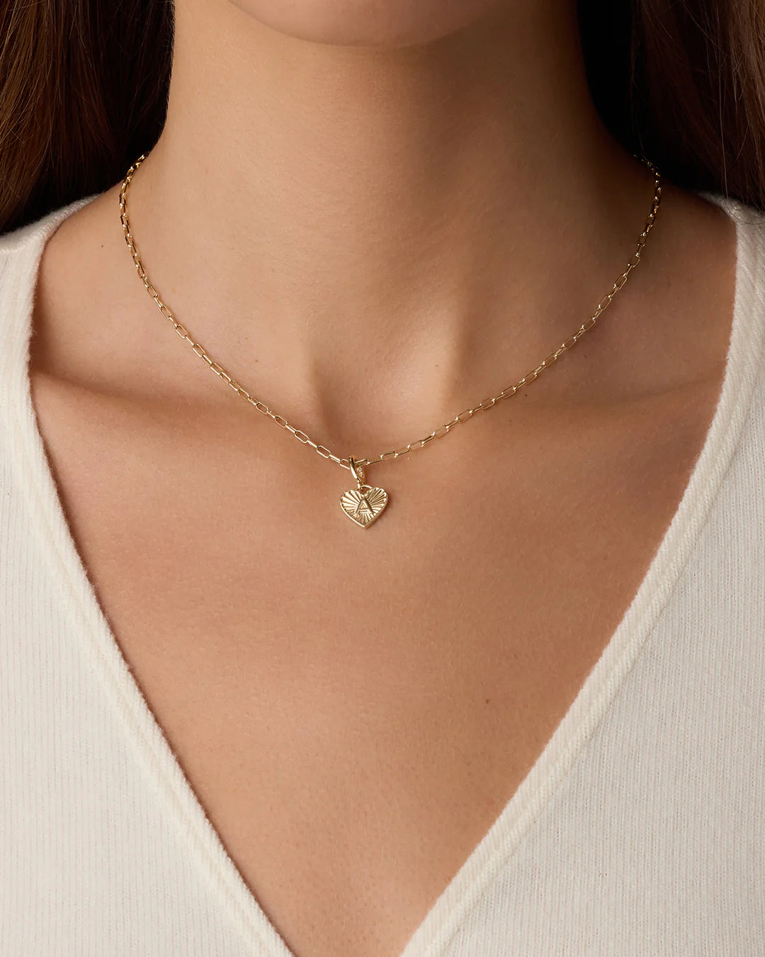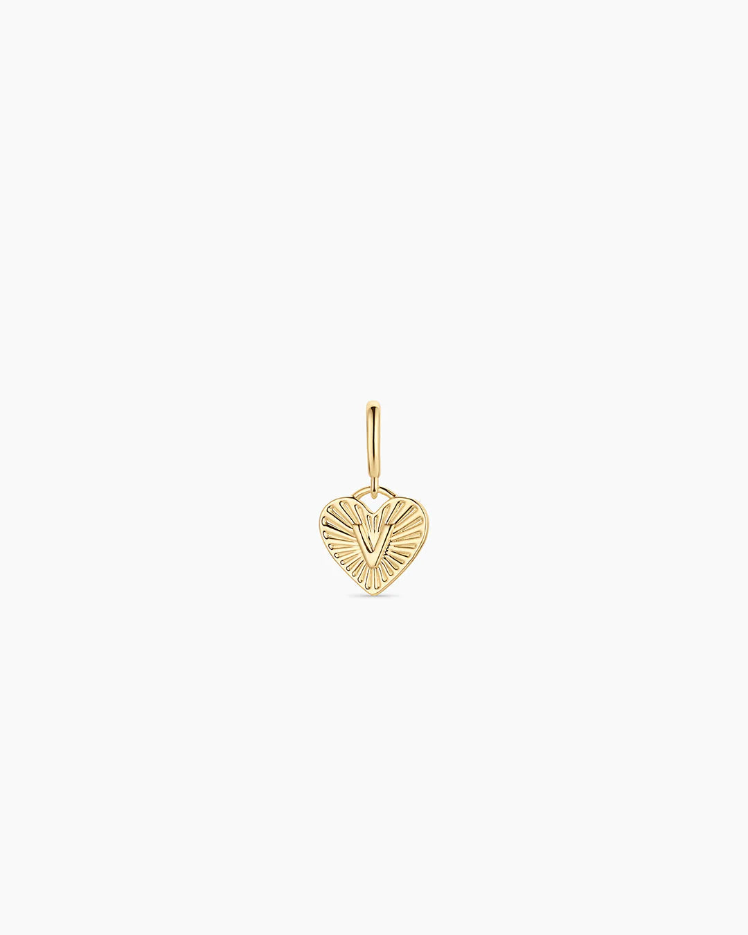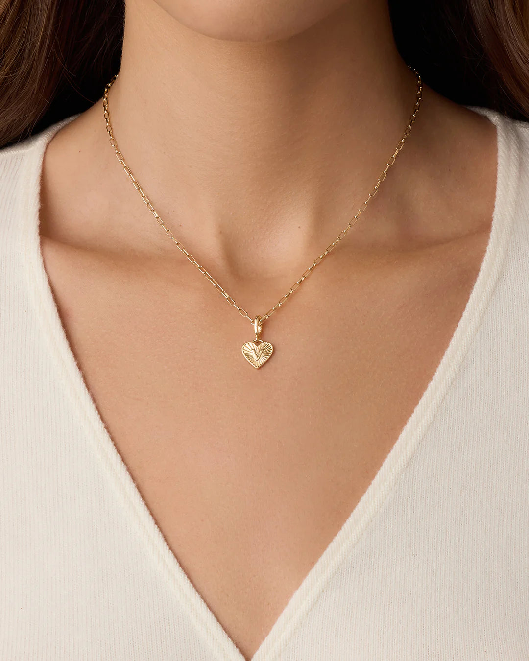 This vintage-inspired 18k gold plated initial charm is equal parts romantic and personal, featuring a classic heart silhouette with your initial (or someone else's, we won't ask). Whether you're wearing it alone or with other meaningful charms, it's sweet, it's stylish and it goes with everything. PS It also makes a great gift.