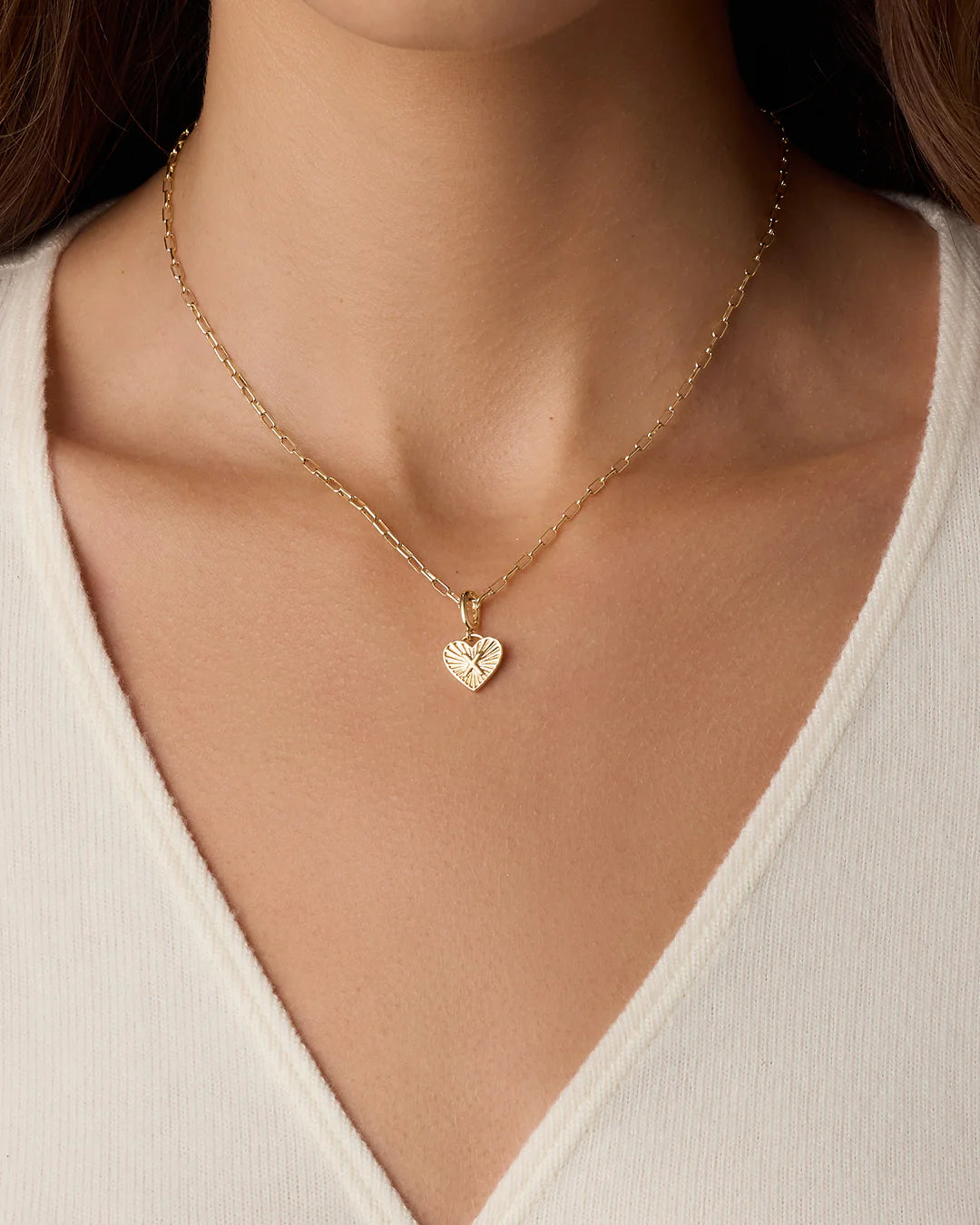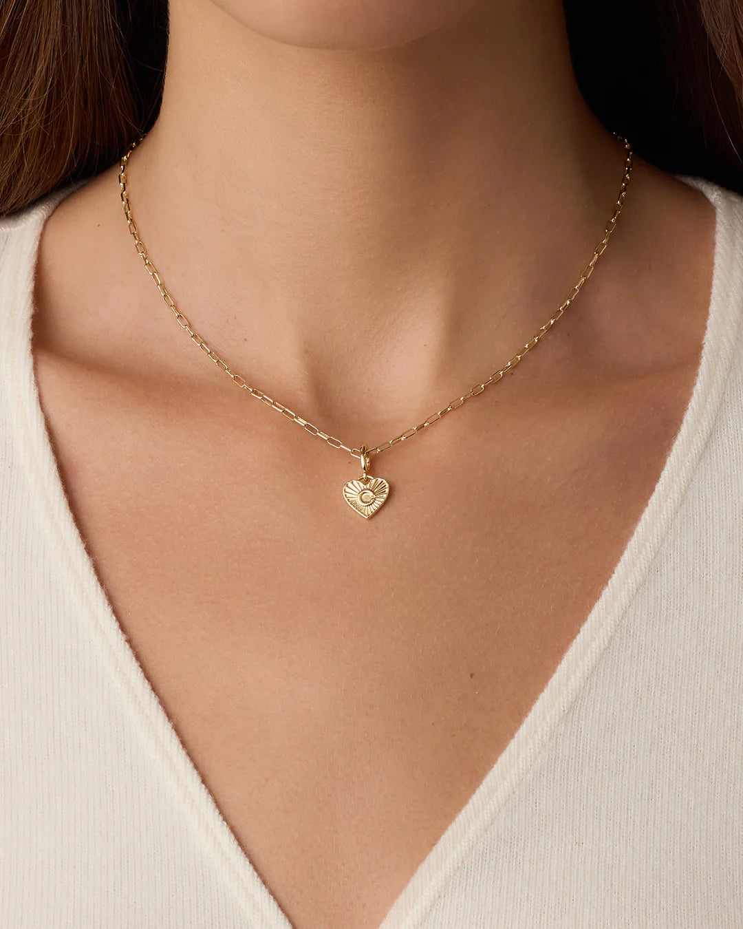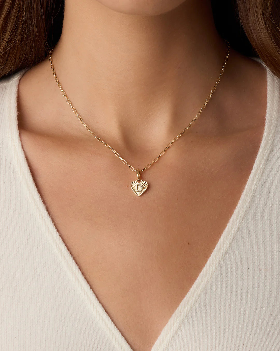 This vintage-inspired 18k gold plated initial charm is equal parts romantic and personal, featuring a classic heart silhouette with your initial (or someone else's, we won't ask). Whether you're wearing it alone or with other meaningful charms, it's sweet, it's stylish and it goes with everything. PS It also makes a great gift.
