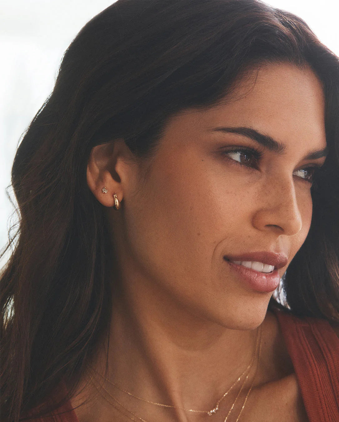 Featuring a unique design, this dainty White Sapphire Trio Stud is the perfect finishing touch to any ear stack. We like to wear ours in first, second or third piercings.